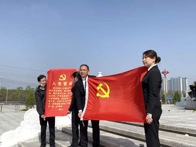 当上午10时,鄂州市烈士陵园内,气氛庄严肃穆,烈士纪念碑巍然耸立陵园正中央。凤凰山庄代表们怀着崇敬的心情向烈士纪念碑敬献了花篮,在庄严的烈士纪念碑下,面对着鲜红的党旗,集体重温了入党誓词,同志们的誓词铿锵有力,响彻陵园。