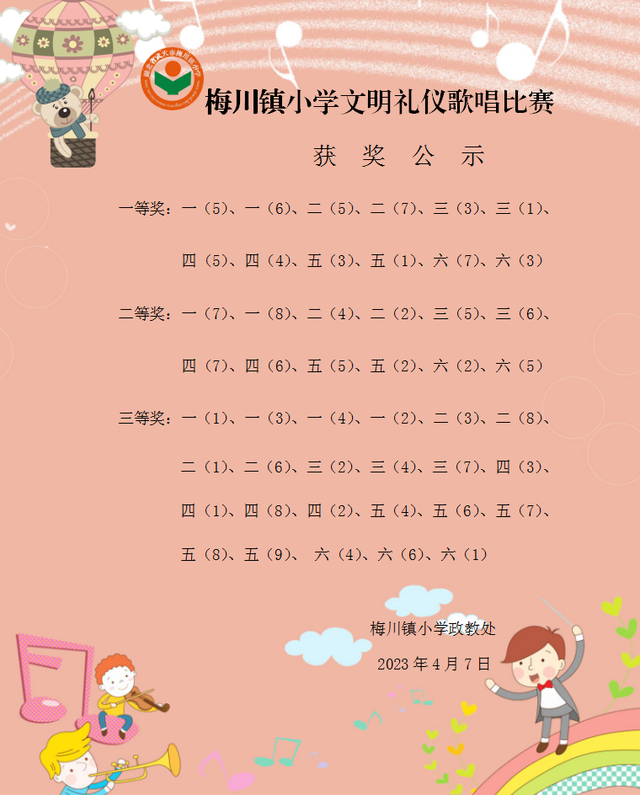 校歌是学校重要的文化标志,是学校精神的重要载体,也是凝聚人心,振奋精神的一面旗帜。该校校歌《我爱梅川镇小学》旋律优美动听,歌词立意深远,内涵丰富,具有很强的感召力和凝聚力。本次校歌合唱比赛以班级为单位,全校学生参与。学校制定了《合唱比赛活动方案》和《评分标准》,成立了专门的评委小组,各班班主任利用课余时间,积极组织学生练唱,做好比赛准备,充分彰显了团队精神。