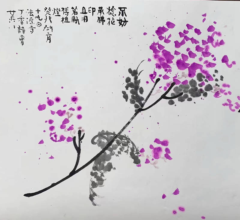 张爽女士写意丁香,并题诗《法源寺妙有》: