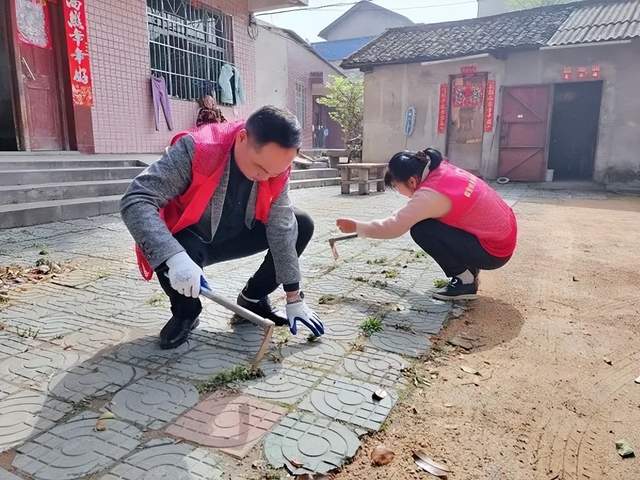 做完了屋里卫生,在村居房前屋后,大家先直接用手拔掉周围杂草,找来箩筐把房屋角落边的建筑垃圾、枯枝树叶、生活废品等都装上运到垃圾箱里,再用水把门前水泥地面冲洗干净。经过一个上午紧张的劳动,全体人员不怕脏、不怕累,干劲十足,劳动现场热火朝天,把十户人家屋里屋外都清理得干干净净。村民们十分高兴,一个个笑得合不拢嘴,纷纷向大家竖起大拇指点赞,表达纯朴的感激之情。