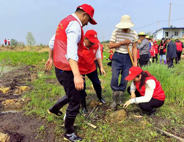 春植莲藕千万株,同心护湖种藕忙。4月11日下午,紧靠沼山镇楠竹村梁子湖湿地十分热闹,船运莲藕,滩涂植藕,大家按种藕形状,有的用铁锹刨出坑,有的用手护芽埋泥,现场一片繁忙。