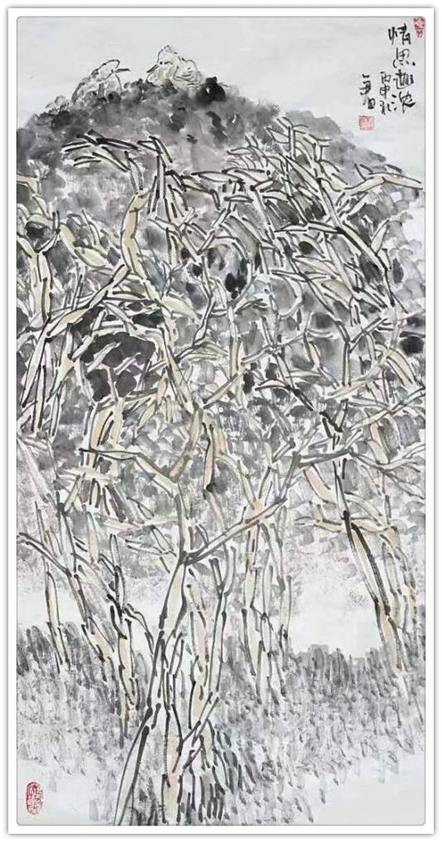 数年来,他一直痴迷于传统笔墨,注重理法用笔,感知自然之妙。他潜心致力于中国山水画的创作与研究,主张“师古·师今·师自然”。艺术追寻中西合璧之道,将传统笔墨技巧与西画光影及色彩相互运用,作品形式语言追求多样化探索,不泥古,不跟风,有新意。在国画基础上有创新创意,传统文化与时尚完美的结合,力求雅俗共赏。有自己的独特的审美眼光,和个人的审美理想。不同的作品涌动出不同的符号变换形式。作品显得浑厚大气,极有个性,富有张力。具有强烈的民族绘画特色和时尚感。有丰富的层次感,构图气韵磅礴,写意中带有自然写实的表达意趣。令人耳目一新,且耐人寻味 。
