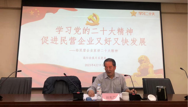 宣讲会上,田书记对党的二十大有关民营经济发展作出的重要论述进行了归纳提炼,并向与会人员逐条阐述,他要求广大民营企业家深刻学习领会“两个毫不动摇”、“促进民营经济发展壮大”、“坚持社会主义市场经济改革方向”等重要精神。田兆广指出,习近平总书记对民营经济健康发展、高质量发展高度重视和支持,作出了两个毫不动摇—即毫不动摇巩固和发展公有制经济,毫不动摇鼓励、支持、引导非公有制经济发展;两个健康—即非公有制经济健康发展和非公有制经济人士健康成长;两个给予—在民营企业遇到困难的时候给予支持,在民营企业遇到困惑的时候给予指导等一系列重要论述,广大民营企业家一定要认真学习,深刻领会,不负习近平总书记的关心厚爱,争做有理想、有抱负、有作为的企业家。就民营企业如何立足新时代面向新未来,田兆广提出了自己的思考见解,给出了指导性意见,他要求,民营企业和民营企业家正确理解党中央方针政策,增强信心、轻装上阵、大胆发展,实现民营经济健康发展、高质量发展。