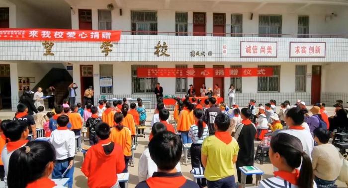 此次爱心捐赠,三家爱心企业为全校学生送上了爱心校服,捐赠了爱心图书、文具,同时还为4月份过生日的同学准备了生日蛋糕。