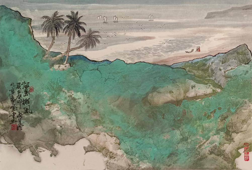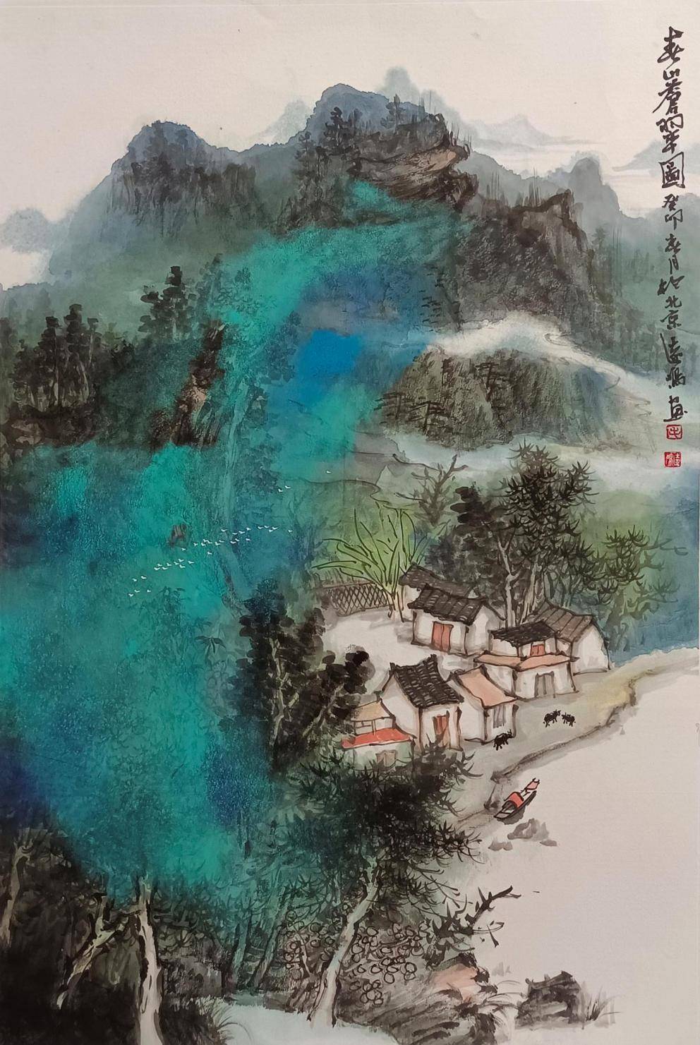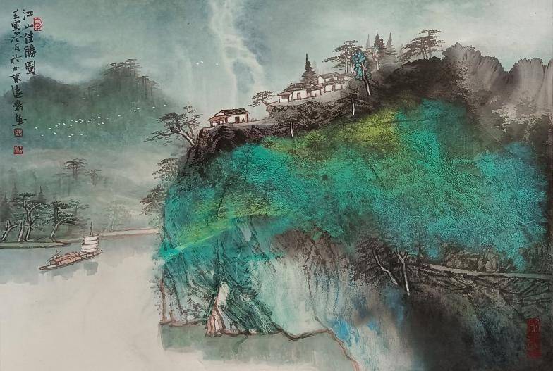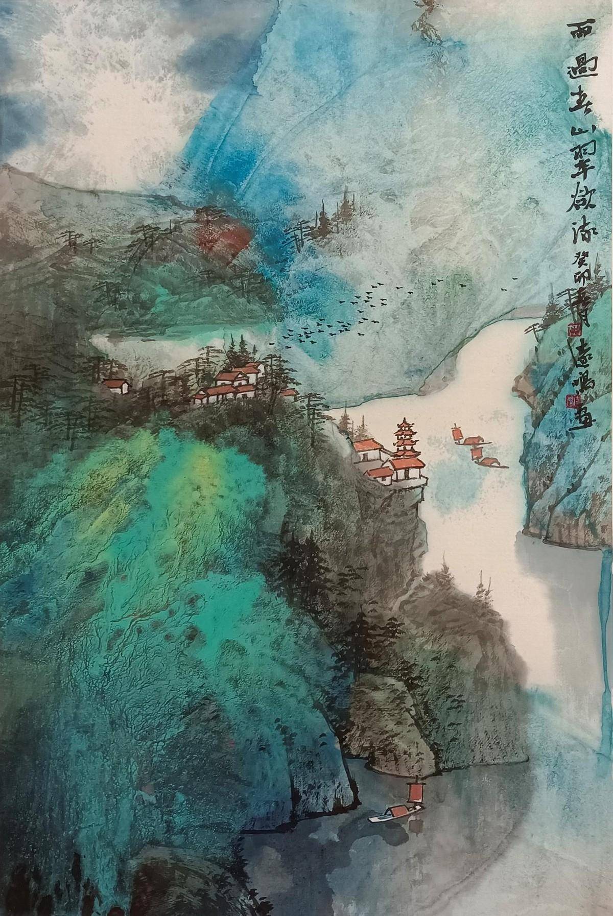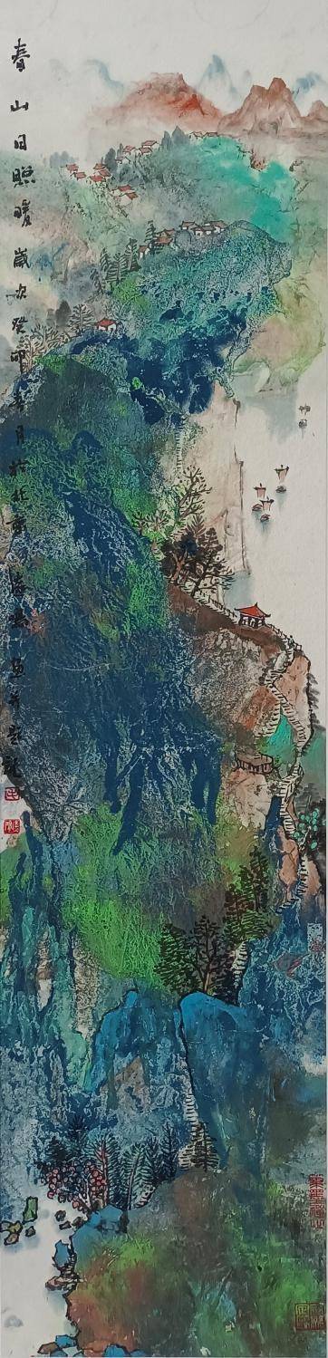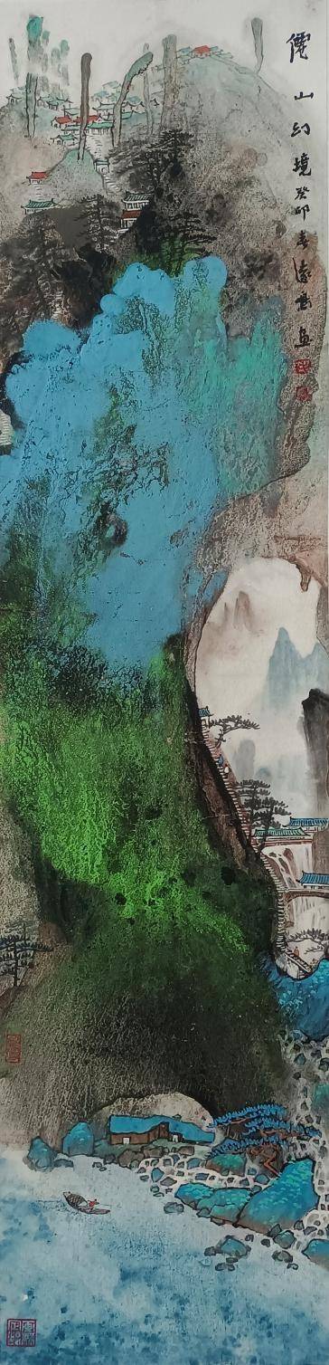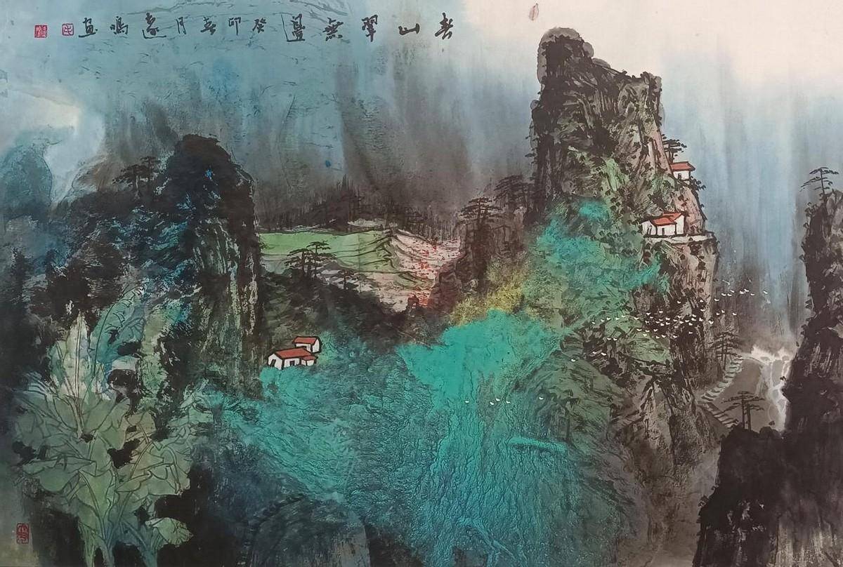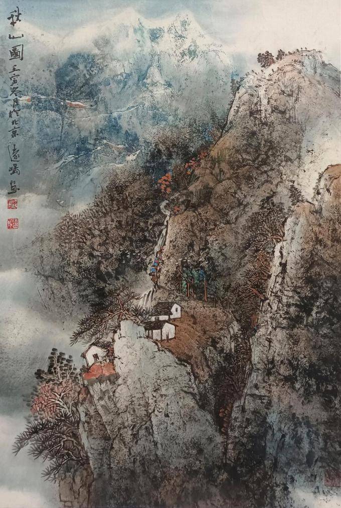 毛远鸣是一位颇具个性的写意重彩山水画家。