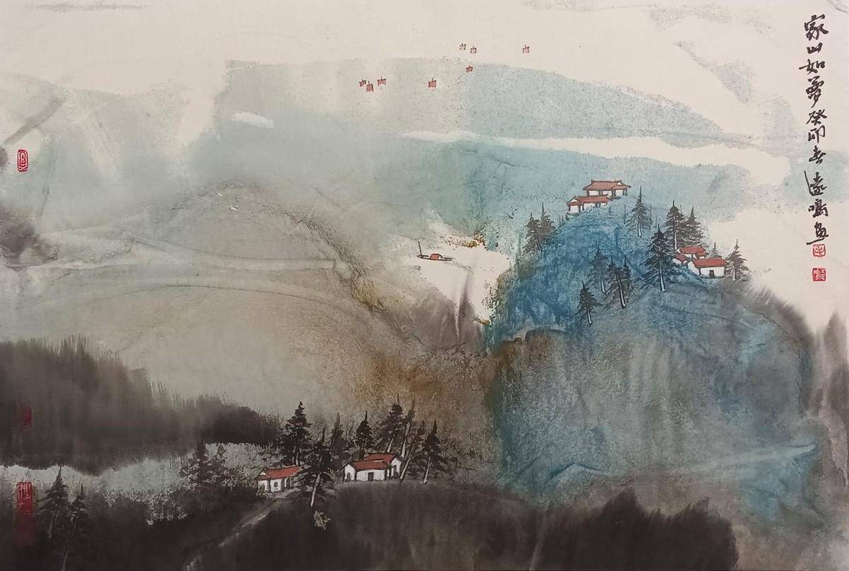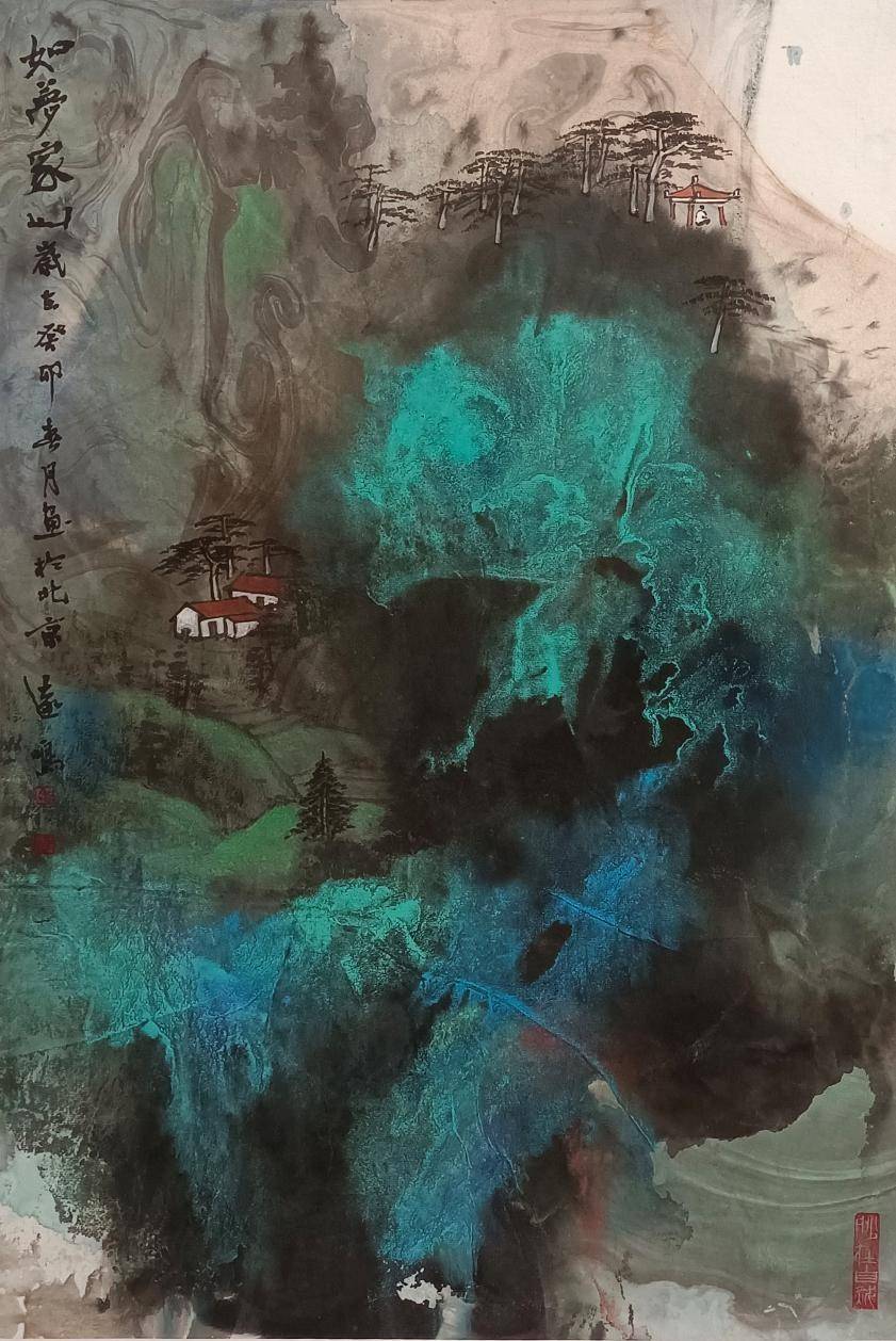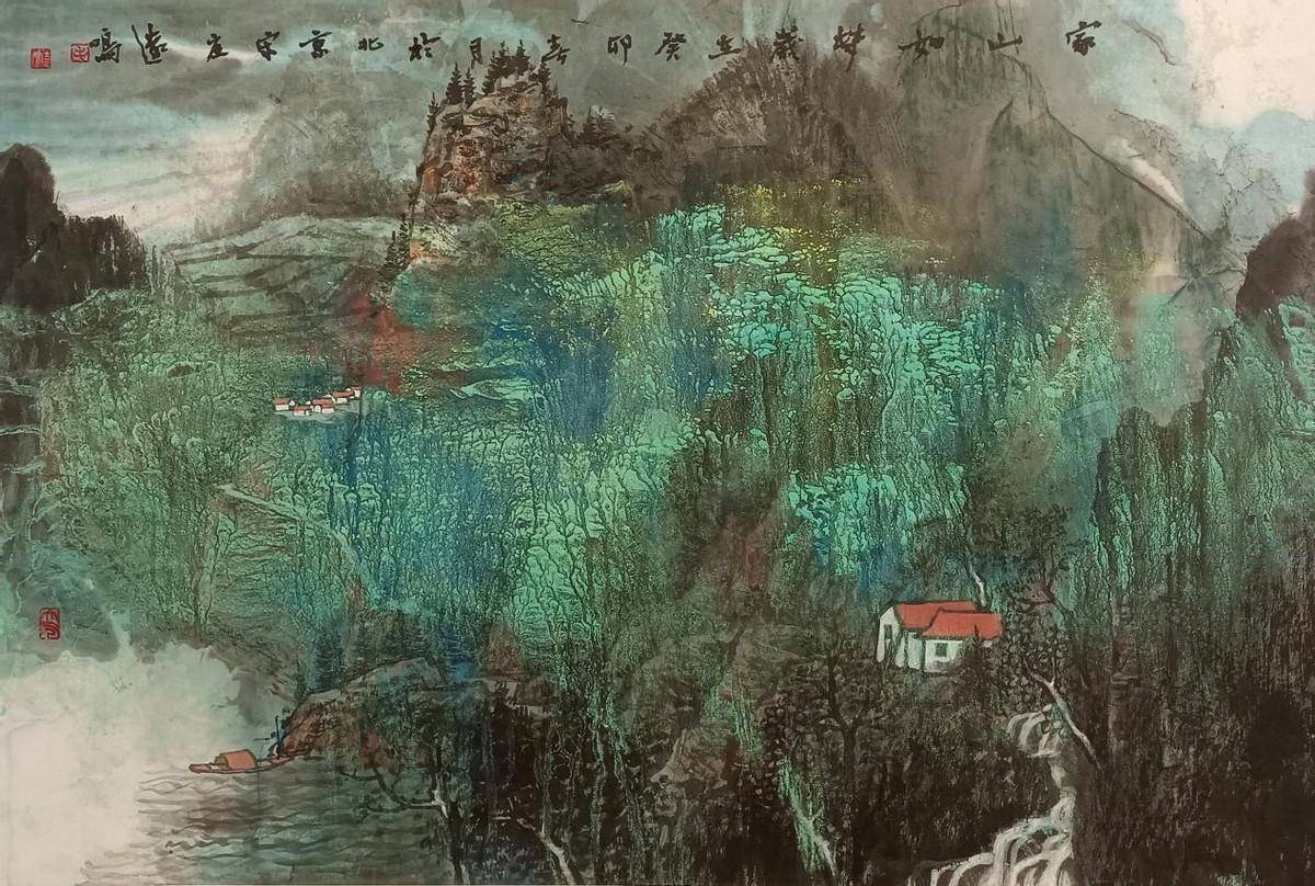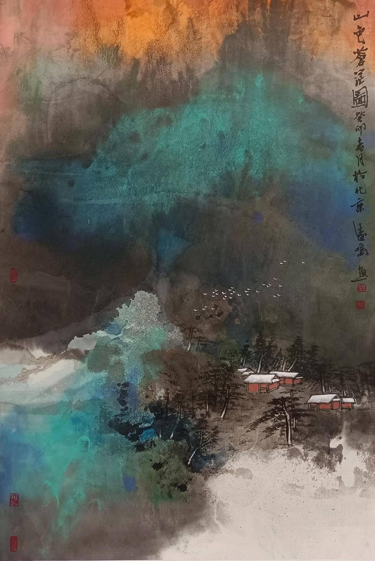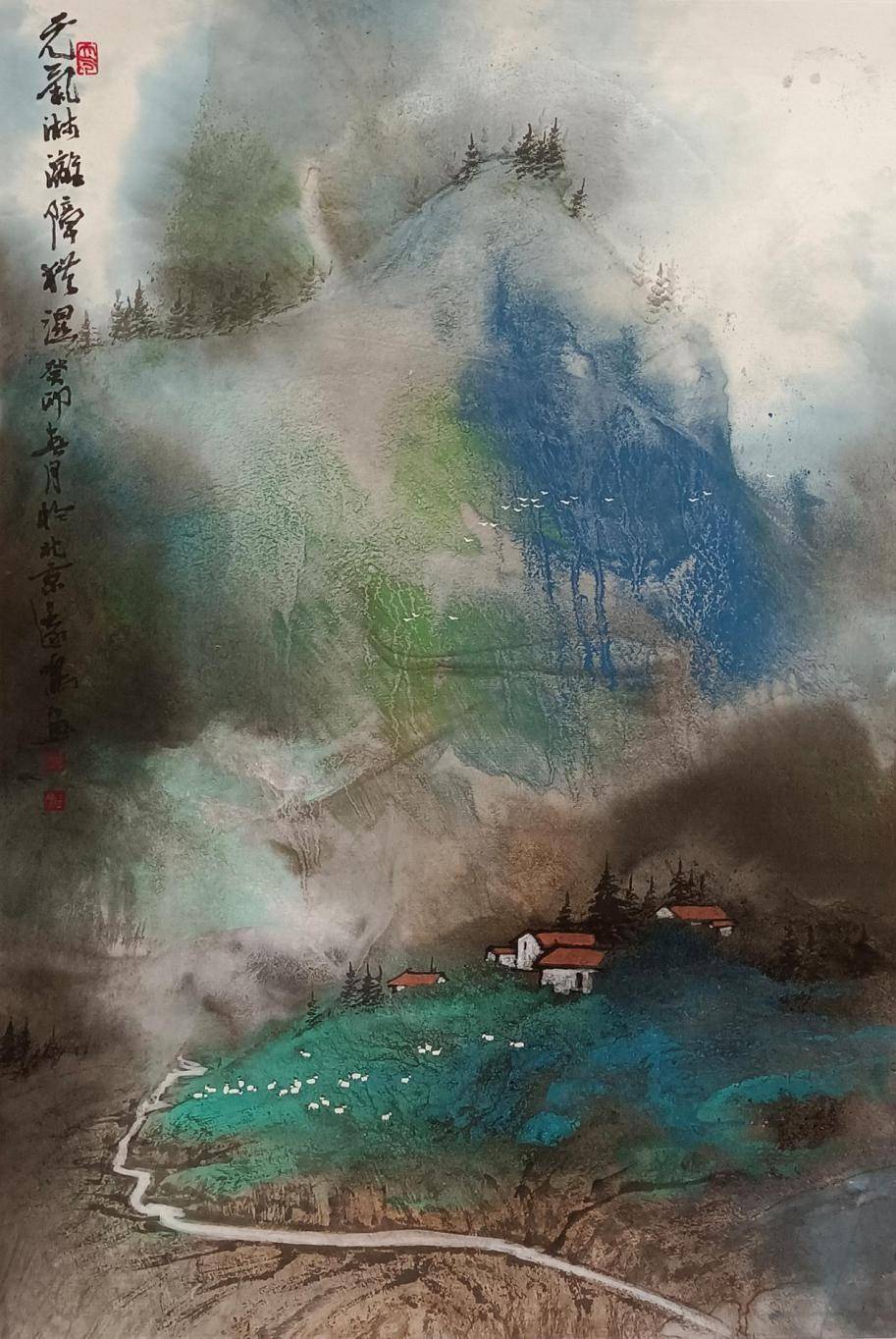 毛氏泼彩重彩山水创始人毛远鸣的作品《雨后山色》被比利时驻华大使馆收藏