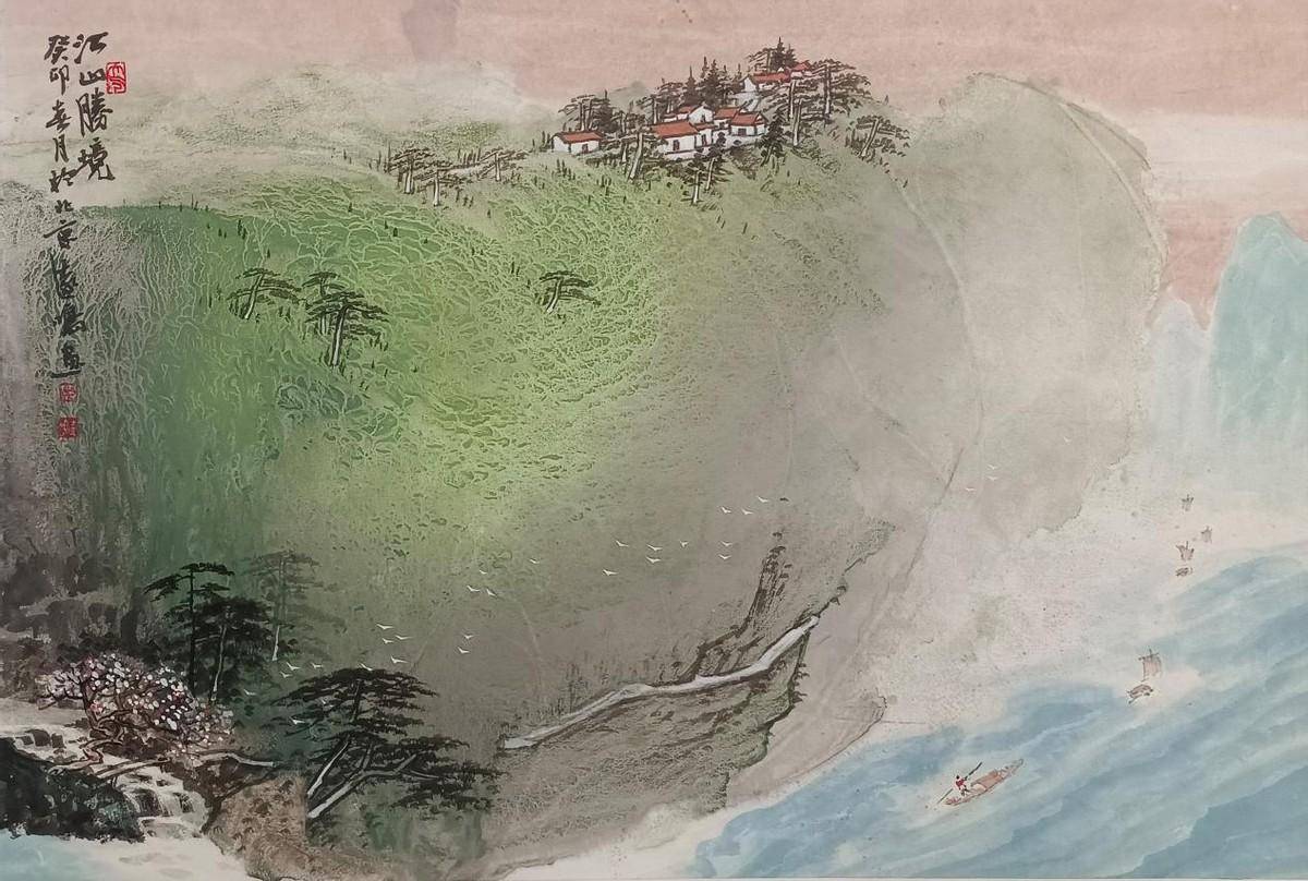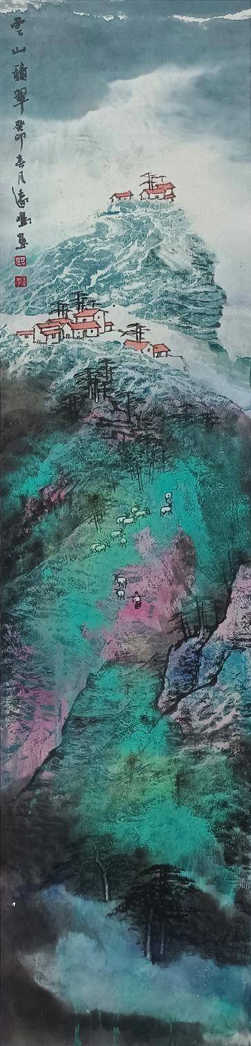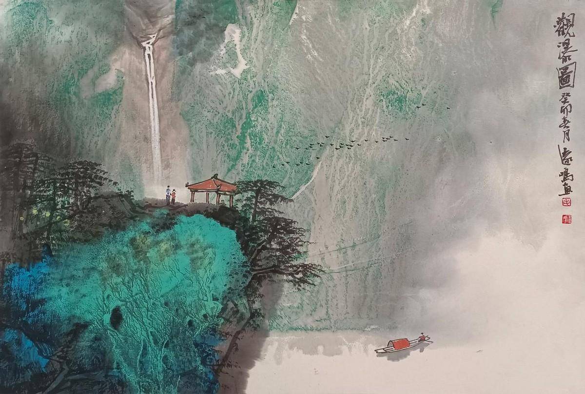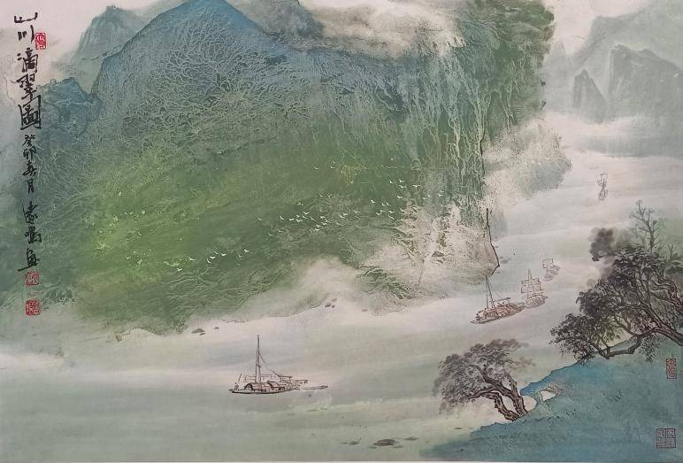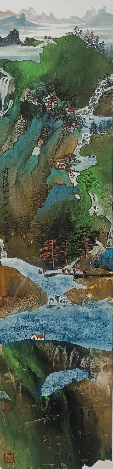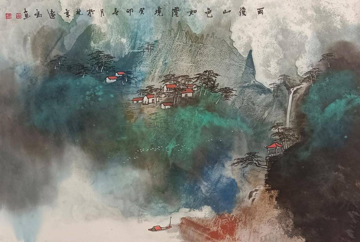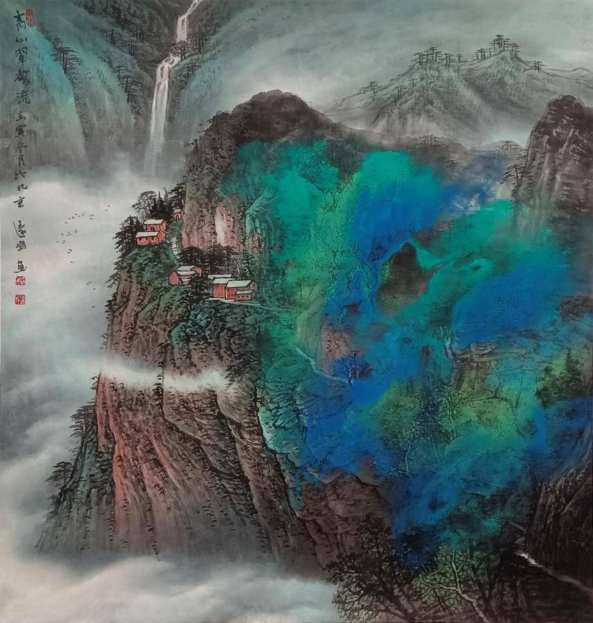 毛氏泼彩重彩山水创始人毛远鸣的作品《雨后山色》被比利时驻华大使馆收藏