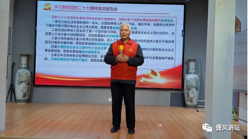 淄博市红色故事宣讲员、优秀五老志愿者、润心书屋班主任邵祺昌宣讲党的二十大精神。