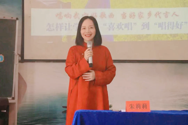 工作室主持人朱莉莉校长以《唱响武穴好歌曲,当好家乡代言人——怎样让学生从“喜欢唱”到“唱得好”》为题,进行了专题讲座。她分别从关注听觉、关注情感经验、引导联想和想象和培养创造能力四个方面和老师们共同探讨了地方音乐校本课程实施的核心。