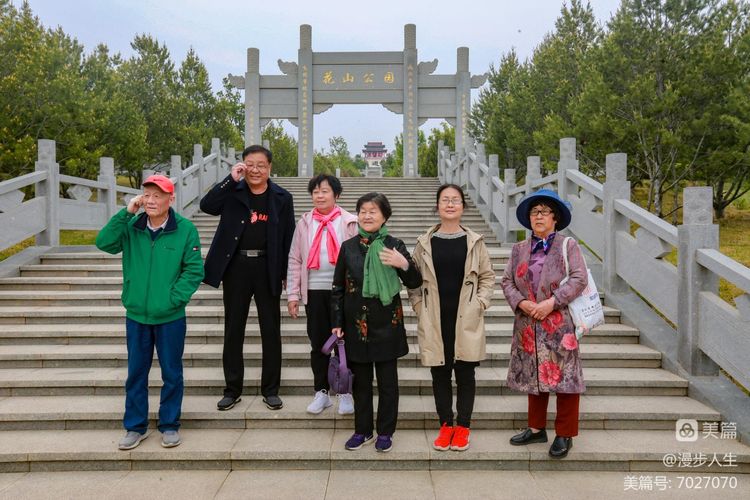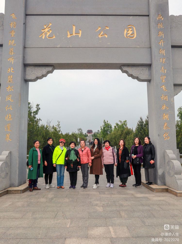 下午来到花山公园。花山绿树葱茏、花草繁茂,园内有海棠谷、梅花谷、昊天殿、碧霞祠、王母台、万寿湖、仙人桥等景点,还有各种运动建设设施,是集观光、休闲、运动为一体的场所。我们拾级而上,集体合影留念,然后一路登顶游览,最后下山来到瀑布区,多层叠水景观,湖水清澈,流瀑潺潺,旁边有大风车与紫藤廊架,美观大方,置身其中,观水听瀑,远望花山山顶风貌,令人心旷神怡,真是“道法孕菡谷,云起映花山”。
