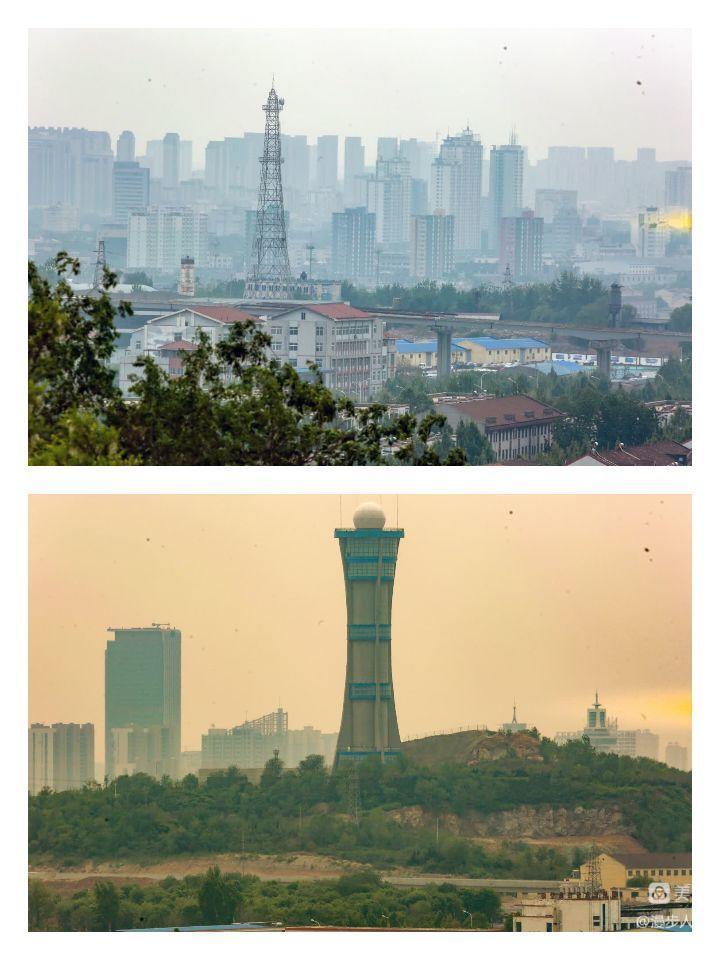 山顶瞭望好风光,饱览红槐嗅蜜香。