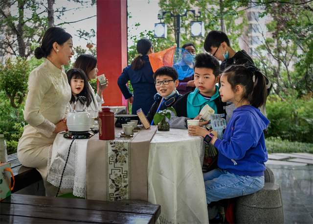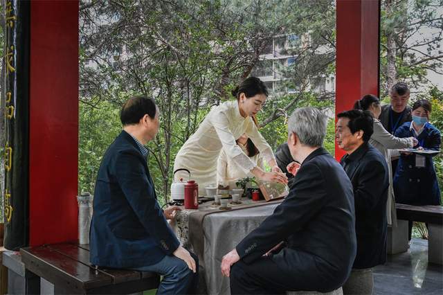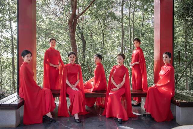 她们既可眼观一袭红装的“仙子"轻移莲步的娜娜多姿,亭亭玉立,又可耳听女琴师弹奏的《高山流水》,亦可鼻闻礼尚往来茶艺师玉手烹茶的缕缕清香。