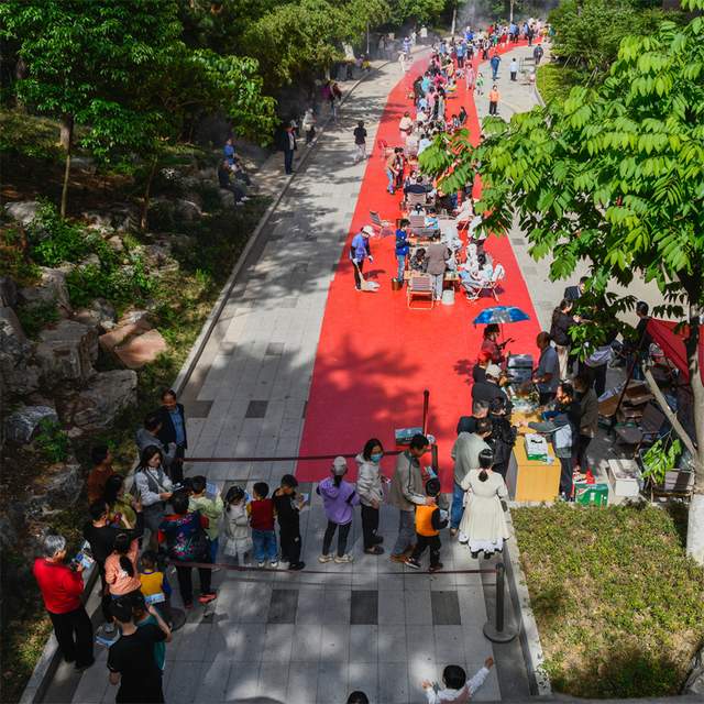 更叫绝的是,游客穿过“腾龙隧道″,便可在一字排开的淄博烧烤点,品尝舌尖上的味道。
