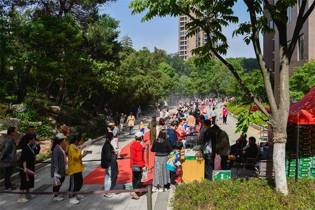 银海龙城金山步道中的“德福亭"、“吉祥亭″以及银龙中央广场三处打卡点,游客排成了“长龙阵",每一处打卡点,都有序安排,游客欢声笑语,快意无限。