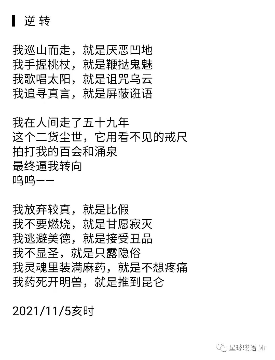 袁勇简介:63年生,后非非诗人、诗歌评论家。在国内各类刊物发表作品并获奖。代表诗歌作品有《动词的先驱》《汉诗之血》;代表诗歌评论有《深陷价值结构中的诗歌英雄》《修辞化处境的反叛与逃离》。因突发颅内出血,经再度抢救无效,诗人于2023年5月3日02时24分辞世,享年60岁。琉璃姬编语:本辑为诗人在我公号发布过的一些诗歌整理存放(包括被封两个号),分享阅读。诗人生前多次推荐过我,袁勇前辈平易近人,性情率真,为人正直,敢怒敢言。回想与他的相识相知,我们之间并没有代沟,只因同样对诗歌写作的热爱与对诗的人文性(在场)的理解,尤其是对于前苏联诗人曼德尔施塔姆的诗,我们有着相同的欣赏与敬意。在物质与信息高密度的时空中,现代诗人的一生极其短暂,很多作者来不及向自己身处的时空输出对生命具体的理解与认知,就会被时代抽象的理解与认知所吞没,我曾对袁勇前辈说自己写诗守心如玉,他则对我说,诗人应修心不修口。诗人的一生都在爱人,来不及被爱,匆匆地来,匆匆离场。每位诗人都带着自己的灵命,写诗即地选之子,大地上的巫师,神灵的赤子,人间的情人…… 人当然无法同时高于空间与时间,但诗行足以超越轮回。