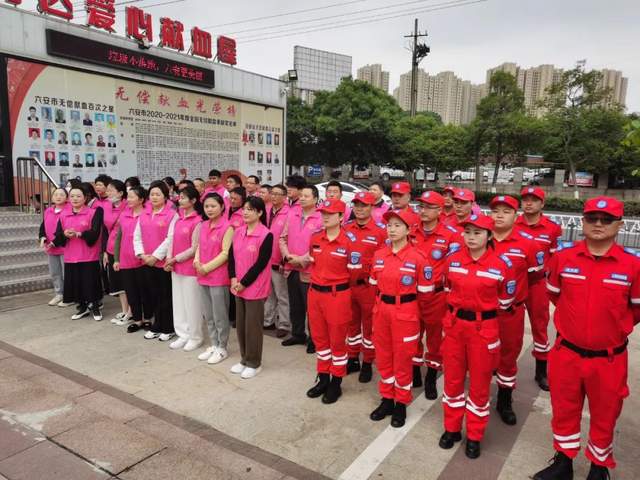六安市裕安区蓝盾应急救援队是一支由民间爱心人士志愿者组成的公益性民间应急救援组织。队伍成立之前,部分成员在历年抗洪抢险、转移灾民、转运应急物资、疫情防控等方面作出了积极贡献。“无论是应急救援,还是无偿献血,蓝盾成员们将始终把保重群众安全健康放在第一位。”蓝盾应急救援队相关负责人表示。而六安市爱心妈妈公益协会的志愿者同样来自于各行各业,正因为他们心中拥有着同样的大爱,所以才能感恩于心,奉献于行,主动参与到无偿献血,拯救生命这项有意义的活动中来。