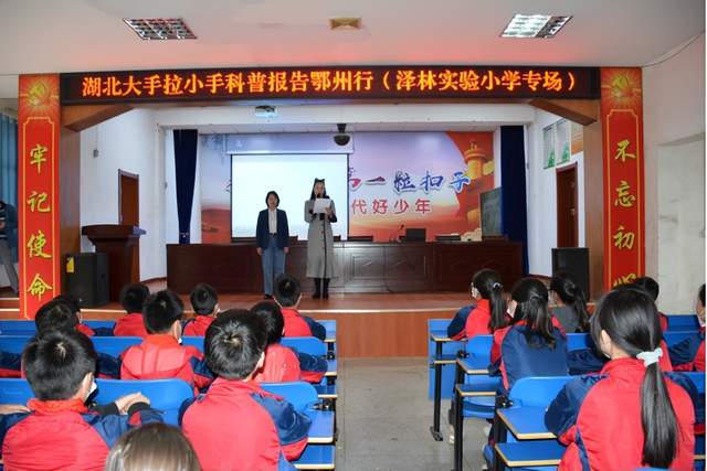 “同学们,你们知道去年夏天的气候是怎样的?”一场别开生面的讲座吸引着泽林实验小学孩子们好奇的目光。2023年5月10日上午,由湖北省青少年科技中心、湖北省青少年科技教育协会主办,鄂州市科协、鄂州市教育局承办的湖北“大手拉小手科普报告团鄂州行”活动走进鄂城区泽林实验小学,为该校200多名师生送上了一份生动有趣、丰富多彩的气象科普知识大餐。