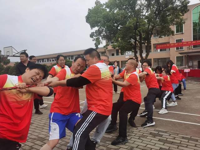 比赛包括袋鼠跳跳、合作运球接力、拔河三个趣味项目,由黄山中学、沙窝小学联队、渔坝小学联队三个代表队参赛,来自全乡中小学和幼儿园的80多位教职工参加了角逐。