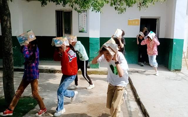 随着警报响起,各班老师迅速指挥学生做好避震准备,孩子们迅速卷曲身体,降低重心,用双手护住头部,躲在桌子下教室的墙角等坚固的三角区。