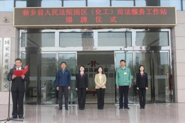 为优化营商环境,助力企业发展,5月10日,新乡县人民法院举行“园区(化工)司法服务工作站”、“园区(振动)司法服务工作站”成立仪式。新乡县委常委、统战部部长刘婷婷、新乡县法院院长张妍丽、新乡县人民法院副院长赵新伟、刘卓斐、河南心连心化学工业集团股份有限公司以及河南威猛震动设备股份有限公司负责人出席成立仪式。刘婷婷、张妍丽为园区司法服务工作站揭牌。