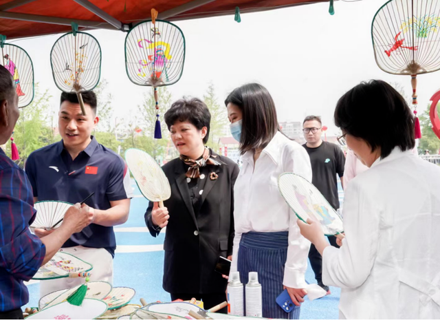 在这里,体育和文化融合。武汉市将活动安排在晚上,蔡甸区永安街道高紫山文体广场近800名群众点燃了乡村之夜的运动激情。潜江站设置了非遗活动体验区域,皮影、剪纸、油纸伞、面塑等相关非遗传承人现场献艺,巧思佳作吸引大量观众驻足观赏。随州站将民族舞、体育模特等带上了表演的舞台。恩施州宣恩县高罗镇党委宣统委员、副镇长张荟杨说:“湖北省全民健身八进乡村活动,这次来到宣恩县高罗镇,开展的一系列活动极大地凝聚了诗画苗乡、大美高罗的精气神,也对我们具有地方特色的八宝铜铃、‘扭摆甩’等集中展演,拉满了全民参与的氛围,掀起了全民健身的高潮。”