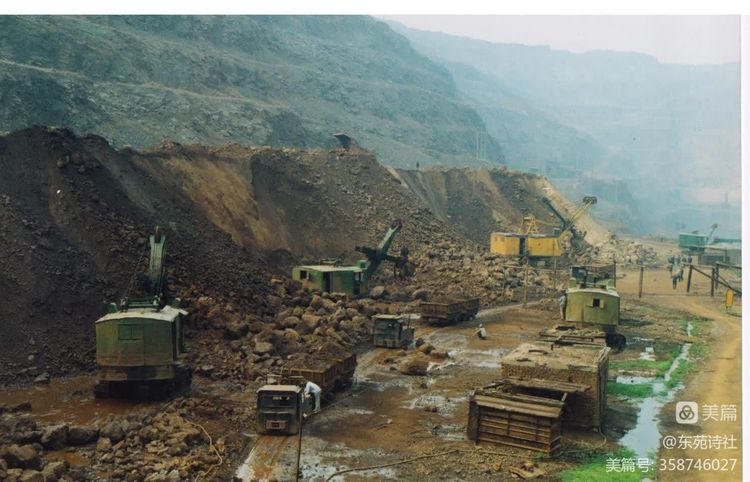 阵阵炮声尘土扬,万人铁矿采山忙。红旗招展遮天地,机器轰鸣震八方。如梦幻,是情长,乡愁泪洒满池溏。重生浴火凌云志,锚链航船四海翔。