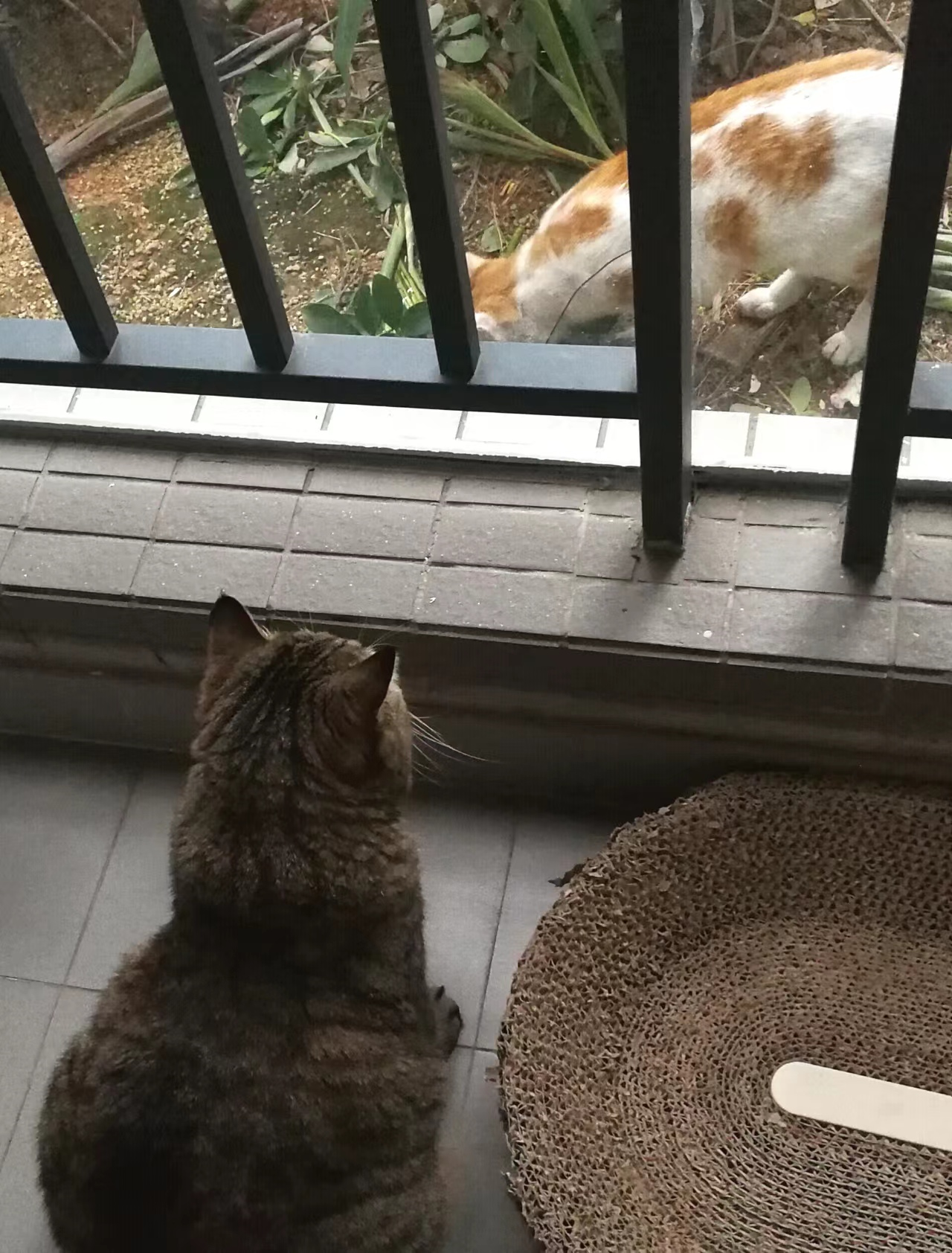 2023年春天,有一只小黄猫,每天早晨都会到我家的窗下,与我家的家辉聊天。我每天起床的第一件事不再是上厕所,而是把玻璃拉门打开,让家辉去阳台与小黄猫见面。一个在玻璃里面,一个在玻璃外面喵喵的交流。它俩像围城一样,外面的羡慕里面的有吃有喝,养尊处优;里面的羡慕外面的自由自在,无拘无束。我家阳台的下半截是用玻璃封着的。有时,我会抱起家辉打开窗户让它俩再亲近些。可往往是警觉的小黄猫会飞快地跑开。流浪猫必须警觉,因为小区里有好多人遛狗是不栓绳的。