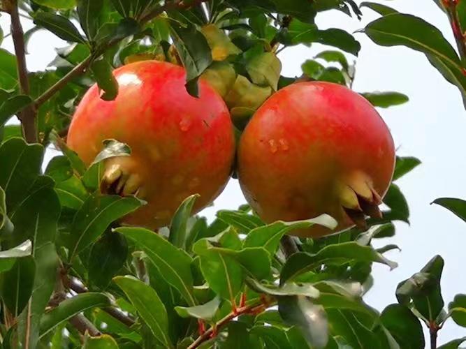 五月榴花似火燃,满树丹红映蓝天;
