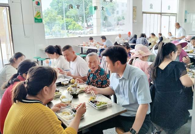 中午11时许,家长们陆续走进食堂用餐,家长开放日从参观到孩子表演,从走进教室看寝室,从开会到问卷调查填表,最后家长用餐,体验学生伙食好不好?细致入微地面对面体验,整个开放日活动有滋有味。