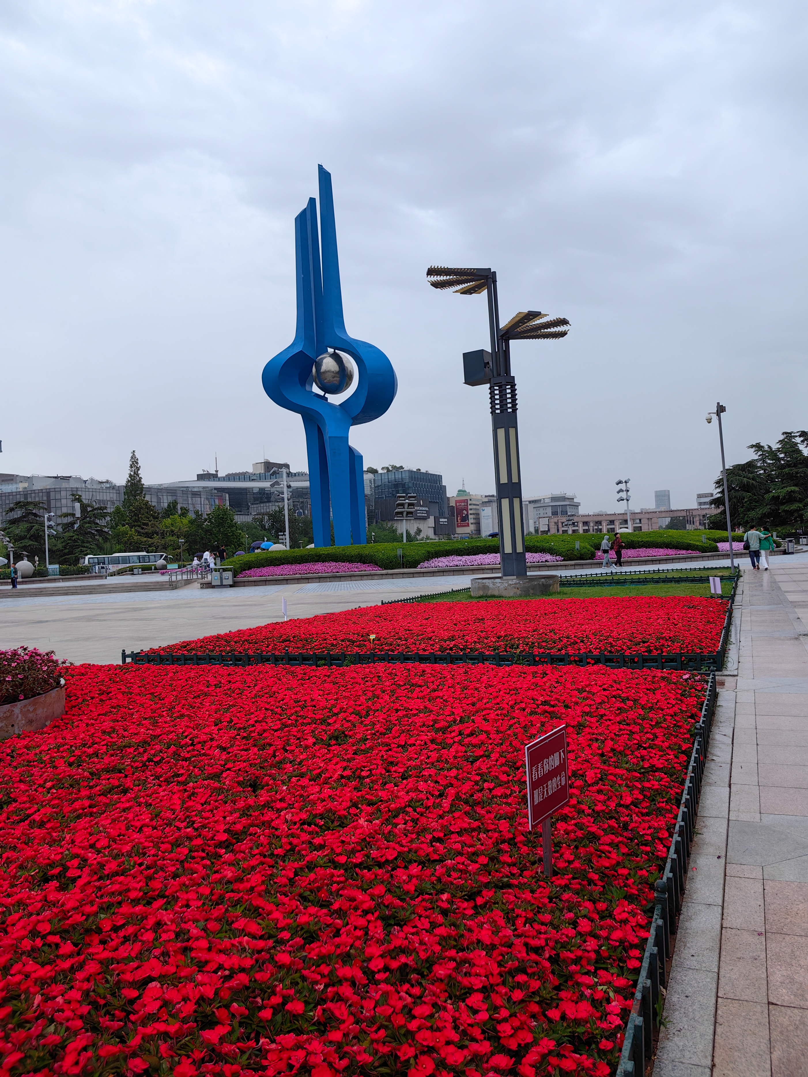 5月21日下午两点左右,济南下了蒙蒙细雨,泉城广场上,花香四溢,景色宜人,人们撑着伞漫步在小雨中,赏花,观景,别有一番韵味。