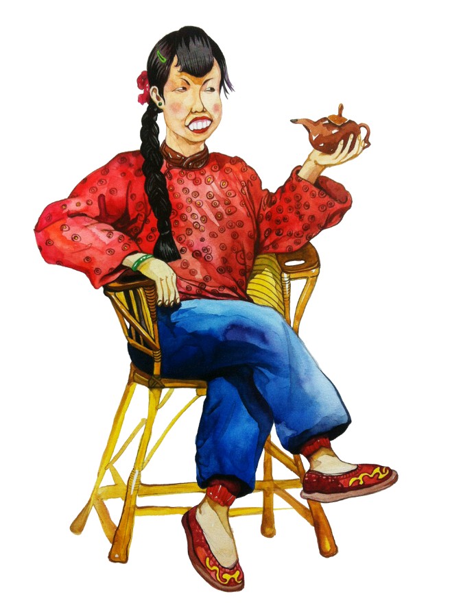 虎妞——大夫,我脑袋没病,我可尖了,不信你考考我,1加1准保得3!