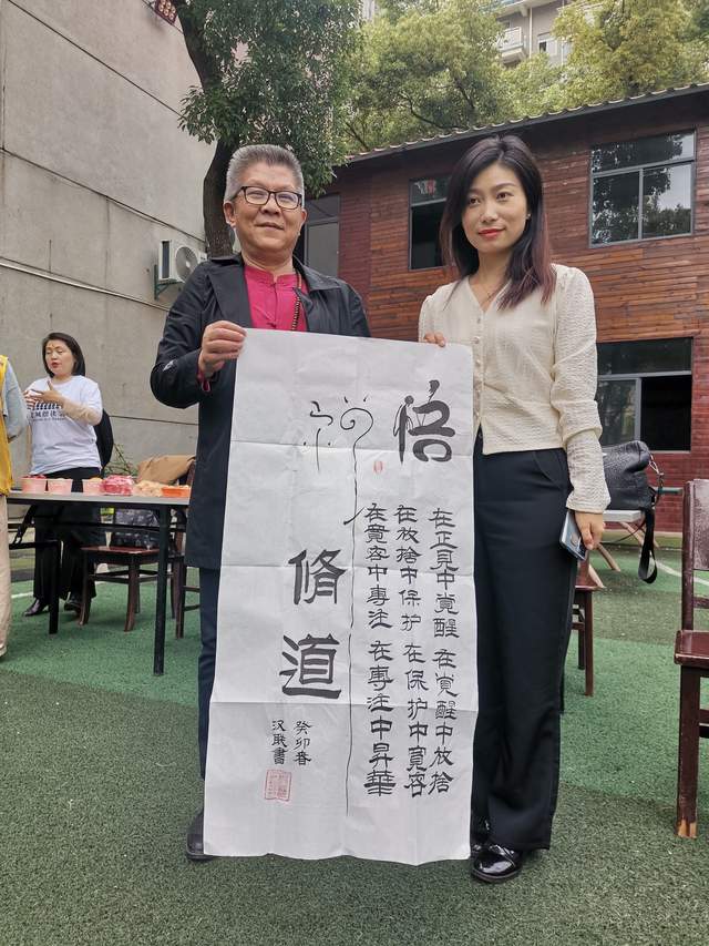 在观看表演的短暂时刻,湖北省文化产业商会副会长 、中国禅意书法家叶汉联先生向我们引见并介绍了春苗学校的陈瑛校长,双方进行了友好的交流,初步达成合作意向。
