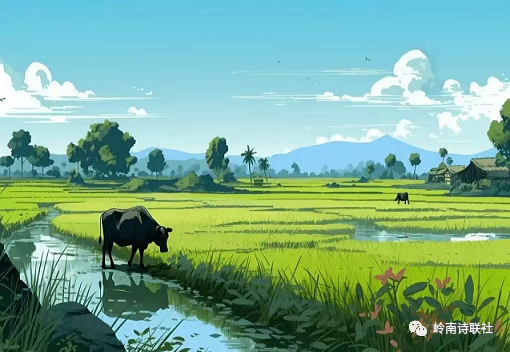 四野葱笼万物荣,溪流潋滟衬蝉鸣。