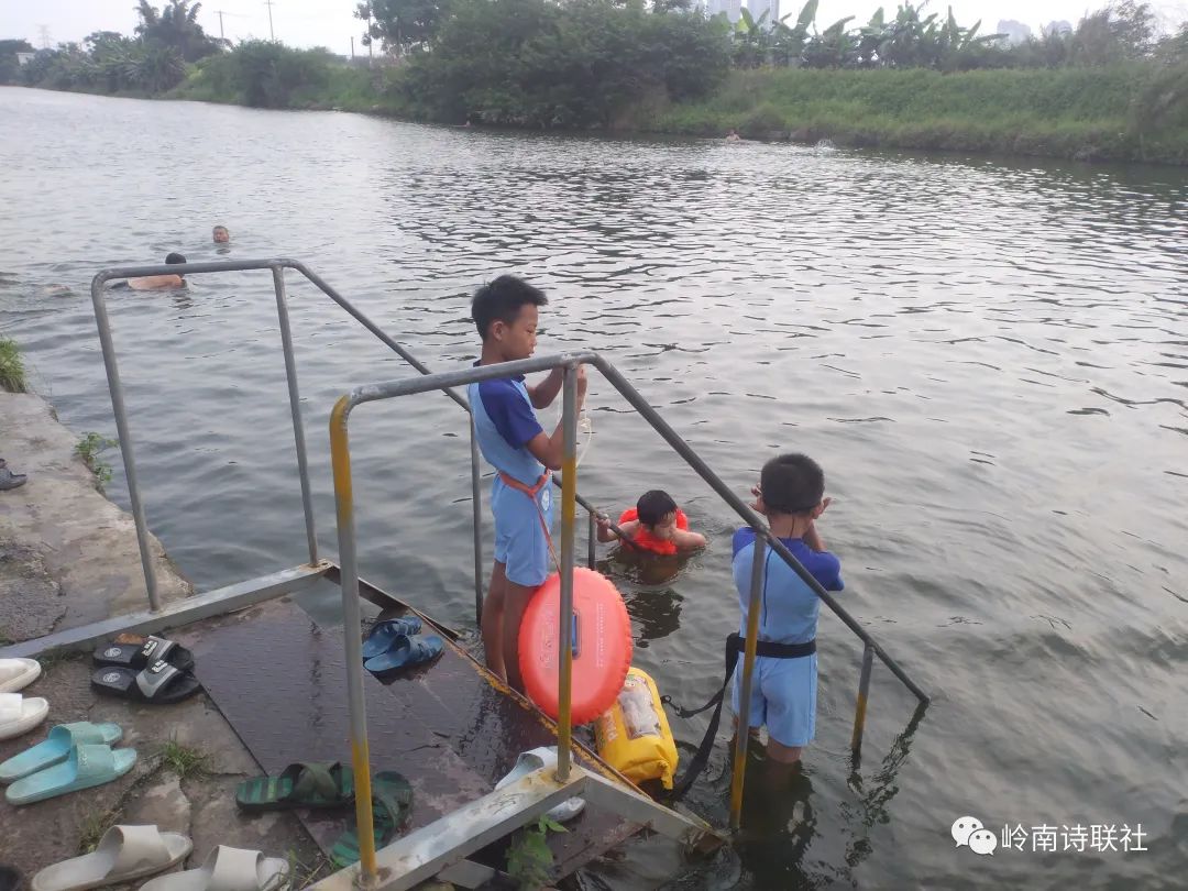 各展泳姿真爽快,南风向晚更怡然。