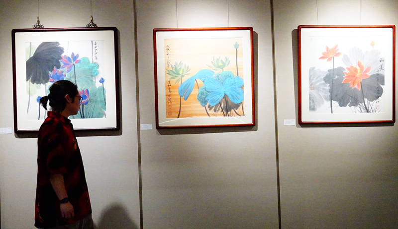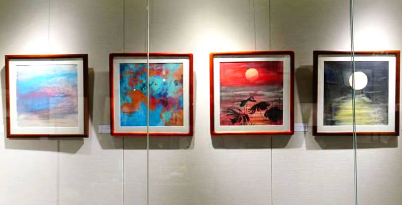 本次展览共展出荷莲作品96幅,画风从具象到意象,进而抽象,其中有7米长的手卷《荷莲春秋》及6.5米长的扇面册页。