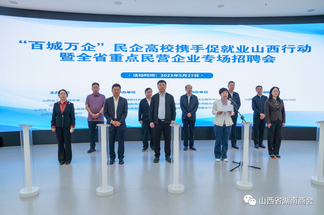 为深入学习贯彻关于“民企高校携手促就业行动”重要指示精神,扎实落实主题教育“办好民生实事”的具体要求,积极推动高校毕业生、退役军人等重点就业群体实现高质量充分就业,5月27日,由山西省工商联、省教育厅、省人社厅、省退役军人事务厅主办,太原市人社局、山西省湖南商会、山西省人才市场有限公司承办的“百城万企”民企高校携手促就业山西行动暨全省重点民营企业专场招聘会在太原人力资源服务产业园举行。