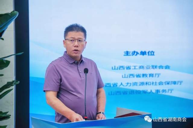 山西省湖南商会会长、峥峰智控科技股份有限公司董事长刘炳辉,山西工程科技职业大学副校长李锦元分别就企业履行社会责任,积极吸纳就业和“访企拓岗促就业”等工作开展情况作了交流发言。