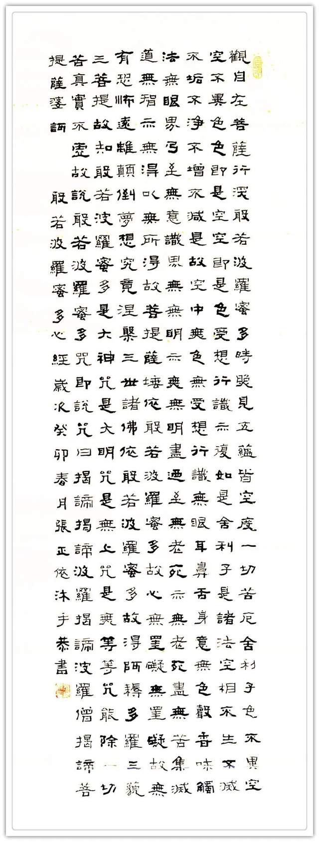 张正依经常以从容淡定的心态挥毫泼墨,其分行布白,匀称整齐之中充满参差错落的变化