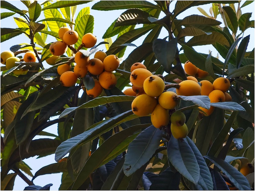 榴儿正试裙妆,杏儿味涩轻尝。何事梢头雀跃?枇杷一树金黄。