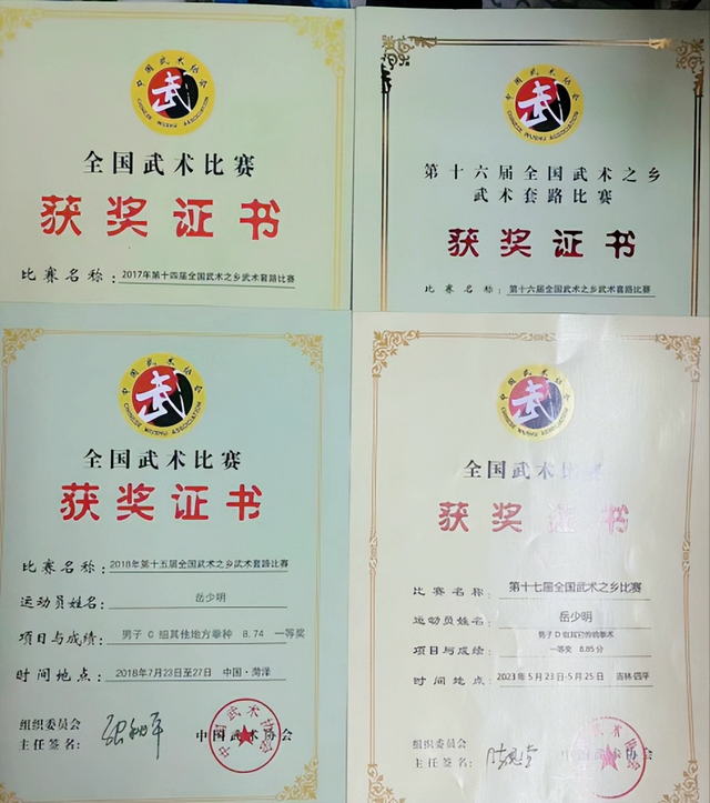 【编者观察】值得庆贺的是,岳少明作为“武林高手”,他还先后在第十四届、第十五届、第十六届全国武术大赛中连续获奖,在全国、省、黄冈武穴市传统武术岳家拳赛事中技压群雄、独领风骚,赢得了全国武术爱好者的高度评价和充分肯定。时至今日,作为岳飞后人,岳少明说,弘扬岳飞精忠报国,习拳练武是我永恒追求。
