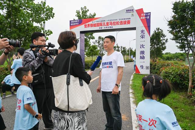 世界童马起跑门前这个接受电视采访的孩子,是长春街小学六年级的鄂子谦。他参加过首届世界铁娃国际儿童选拔赛,这次参加2023世界铁娃人生首场马拉松又获得高年级组第一名。鄂子谦说,“就是感觉很开心,我是第二次参加世界铁娃马拉松,我很喜欢他们的理念:光荣一次,激励一生。跑出免疫力,轻松抓学习”。