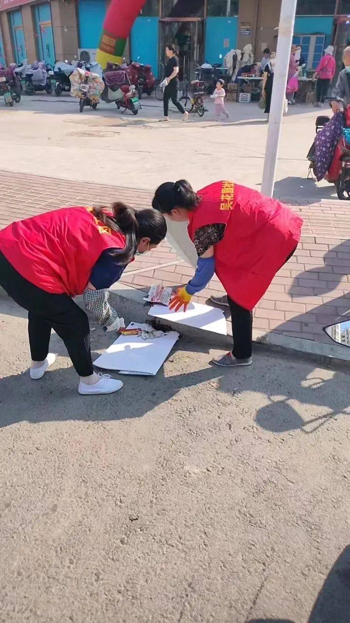 吴花园社区工作人员联合物业对长青街、伯箫路等沿街道路卫生进行清扫,对大件纸箱、废纸果皮等垃圾随扫随运,不堆积不残留,在吴花园农贸市场内清理地面环境,维护消费者食品安全。