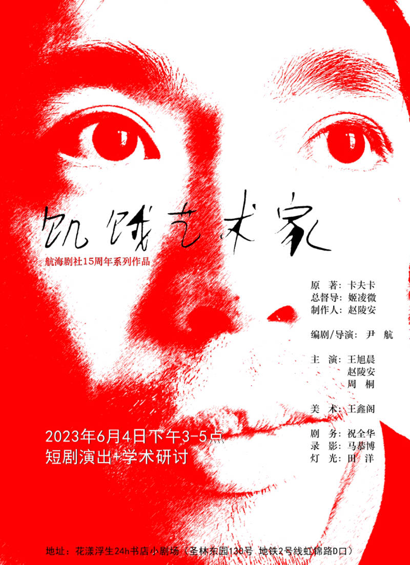 2023年,恰逢剧社15周年纪念,尹航导演带领航海剧社主要成员赵陵安、周桐、王旭晨、王鑫阁、胡玲玲、祝全华、马恭博、田洋、郭明、何怡然、于佳男、陈誉灵等用两个多月的时间辛勤排练,克服了人员不整,资金缺乏等困难,终于在卡夫卡逝世99周年之际,在浮生花漾小剧场完成了《饥饿艺术家》的公演。