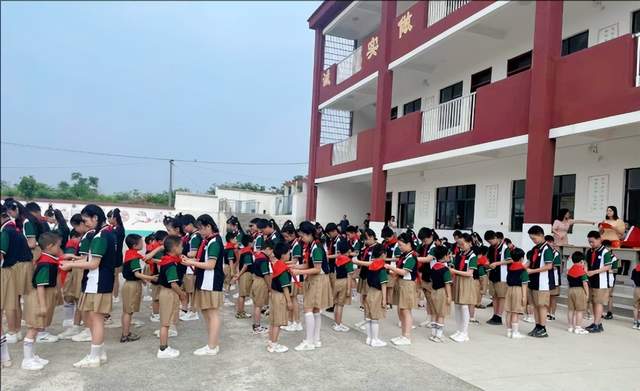 伴随着雄浑嘹亮的国歌,面向国旗,少先队员行队礼,员行注目礼拉开了本次活动的帷幕。随后张雄主任宣读“2023年刘凤袍小学中国少年先锋队入队名单”,随后,为少先队员举行入队仪式。