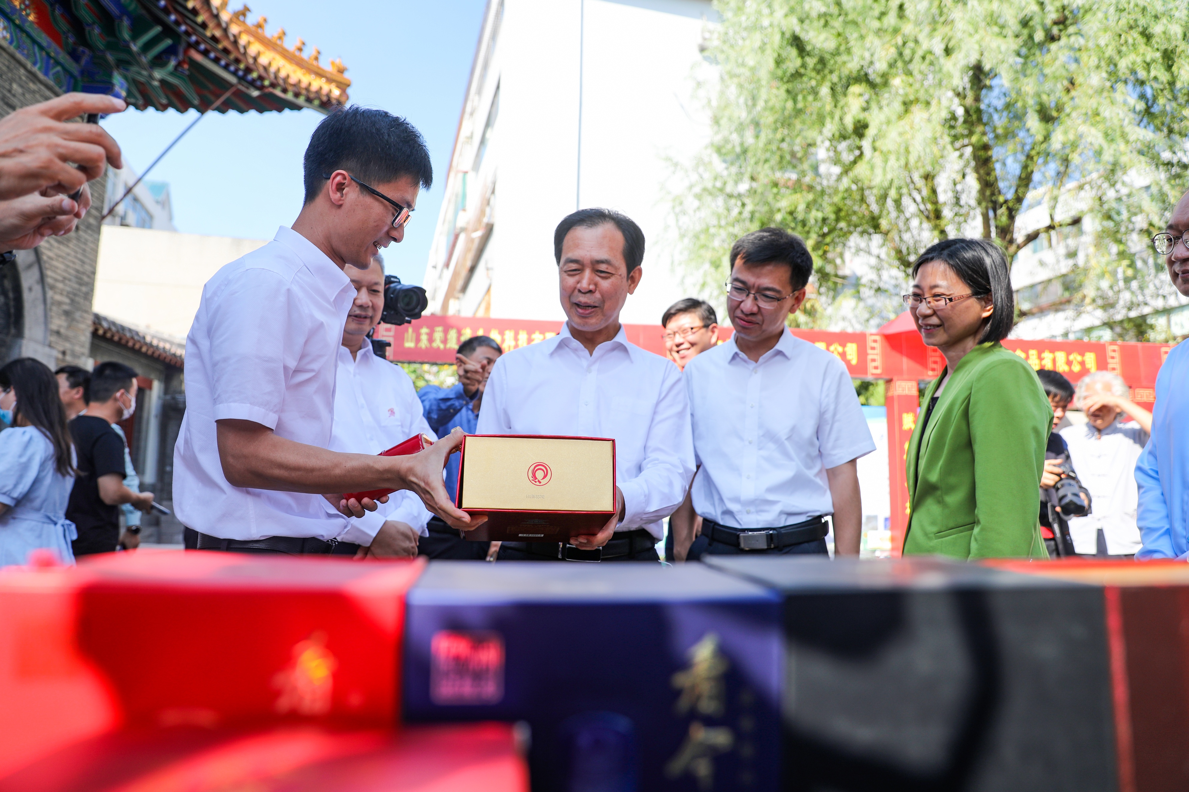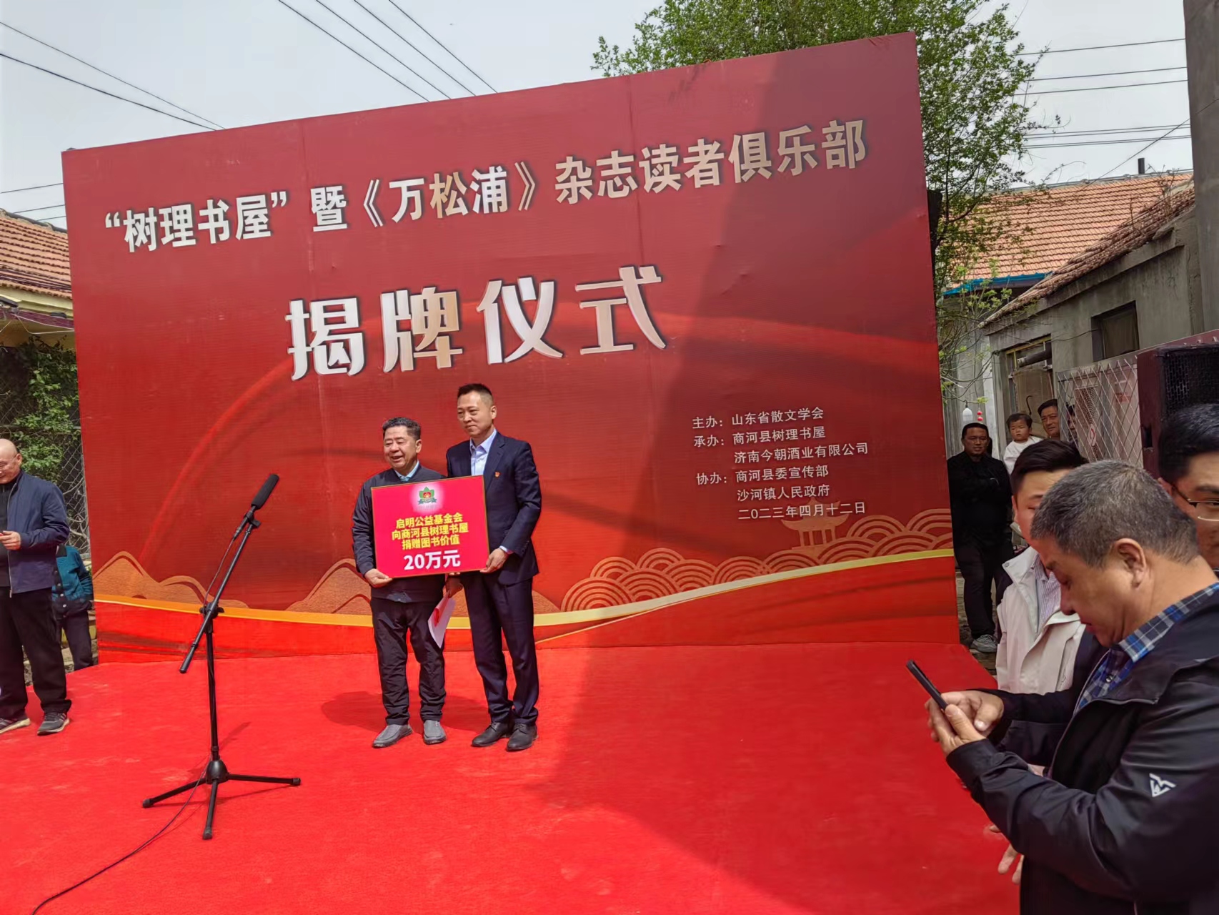 在此前后,4月12日,“树理书屋”暨《万松浦》杂志读者俱乐部揭牌仪式在商河县沙河镇举行;5月2日,玉皇武校三十周年庆典在商河县玉皇庙镇举行;5月7日,商河县文化强县建设暨陈昌茂先生《馨园诗文》出版座谈会在今朝酒业举行。三场文化大餐,带有孔子诞辰纪念活动特定标识的今朝美酒三番助兴,令商河县系列文化活动活色生香,韶乐鼙鼓的混响在鼓乡大地经久不绝。