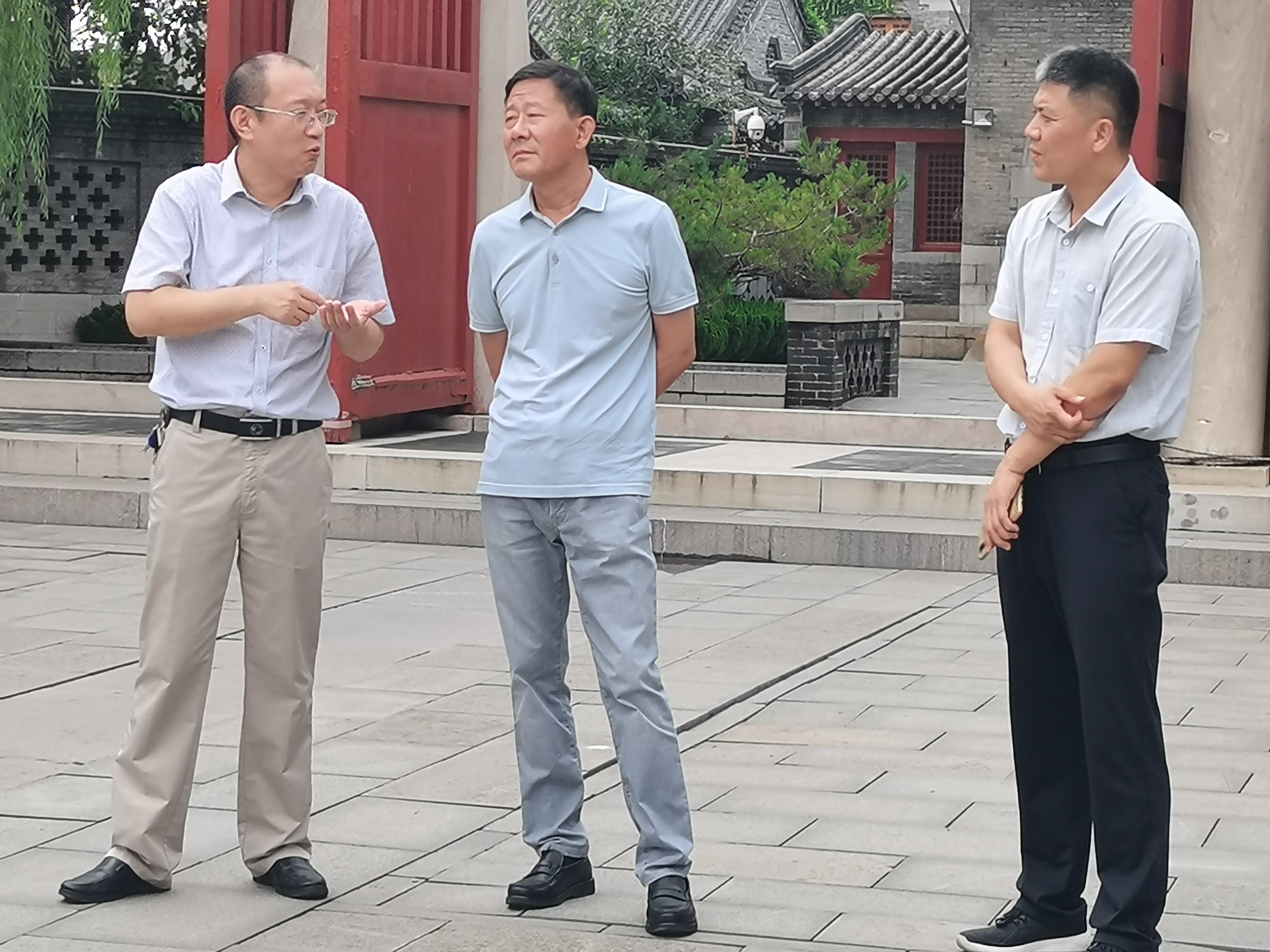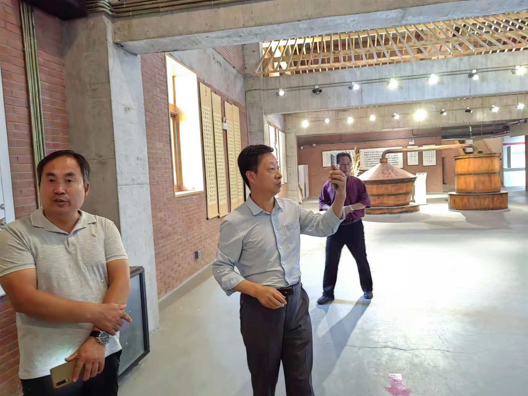 6月5日,济水韶音博物馆馆长郭怀福应邀自济阳曲堤到访商河县济南今朝酒业白酒文化博物馆,玉皇武校张庆山校长以及商河县“麦丘三祝”微信公众号平台几位驻站作者陪同偕行参观。当天,博物馆序厅商河历史时间轴标题“从历史到今朝”格外醒目,恍若2500多年前孔子驻足商河县麦丘原野的微型穿越。历史与今朝的交集或真实、或虚拟,随同滔滔黄河跌宕起伏,逝者如斯夫,最终沉浸于醇厚酒香里,凝瞬间于永恒,成为商河这方热土上的经典传奇。