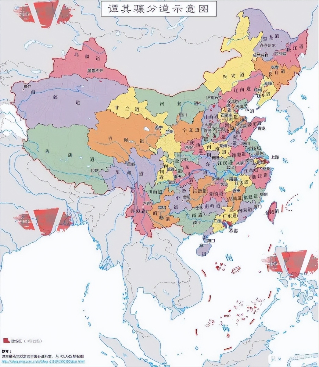 【谭其骧版的“分省图”。其根据山川地形、人文民风的特点,将全国共划分为50个“道”|来自网络】