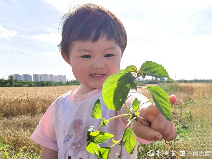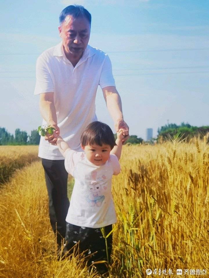 题记:六月二日,与好友绪明及家人“进淄赶烤”后,路遇一丰收的麦田,即住车采风。其小孙女(乳名九九)也跟着下田观麦采花,形影不离,活泼可爱,爷爷更是疼爱有加,让人羡慕,特提笔记之。
