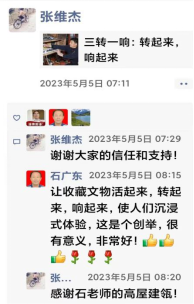 我在张维杰馆长的微信中留言:让收藏文物活起来,转起来,响起来,使人们沉浸式体验,这是个创举,很有意义,非常好!