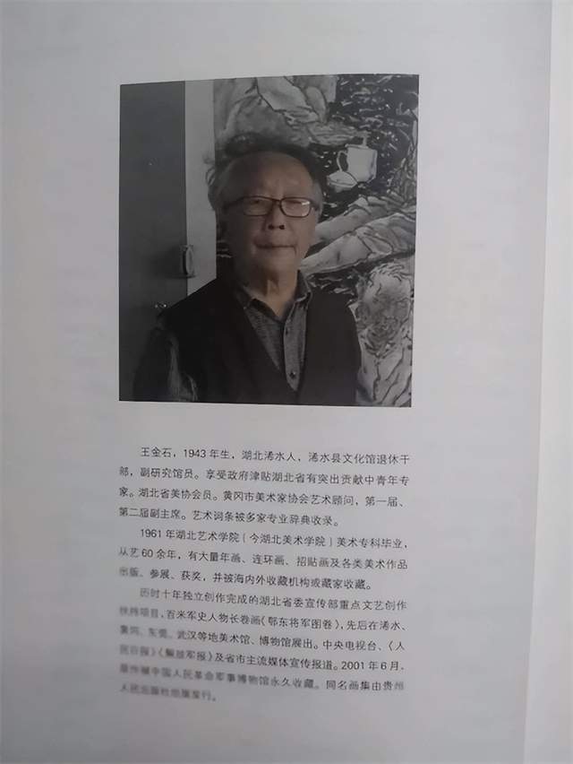 好事成双,值得庆贺的是,《鄂东将军图卷》原图不仅成功进入了中国人民革命军事博物馆,由该馆作为经典收藏,而且被删去某个“敏感”形象和内容的《鄂东将军图卷》也被贵州人民美术出版社公开出版发行。 在采访金石先生,收集他的有关素材的那些日子里,我不仅看到老来成为“乐天派"的金石先生有很多独特新颖的新画作频频在网上被人争相转发点赞,还欣喜地看到20多年前贵州人民美术出版社出版的在今天看来尽管有些令人遗憾的《鄂东将军图卷》的删节版本在实体的市场上、在虚拟的互联网上和民间流传,很多人在寻找这本并未过时的史诗般熠熠生辉的革命历史长卷。